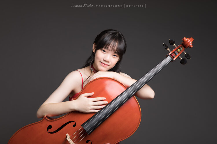 翊恩帶著她的大提琴為即將來到的音樂會海報拍照,