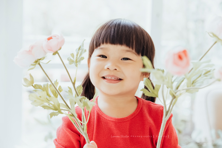 姊姊換上紅色上衣的獨照!姊姊仍然是一個很喜樂的孩子!