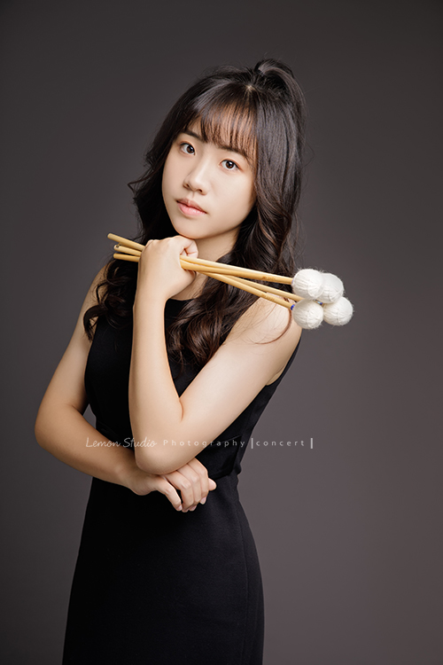 就讀高中的亞璇,學習的樂器是馬林巴木琴,和之前來拍照的珈瑄是好朋友!這天亞璇穿著黑色洋裝入鏡,拍起來非常有氣質很美啊!這張亞璇一手拿琴棒,一手放後面,拍起來很有氣質及架勢!
