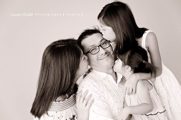夏安&柔安一家來拍家庭寫真,這張是媽麻及姐妹倆親親爸拔的黑白照片!住在女生宿舍的爸拔很幸福!