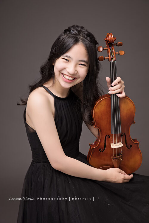 芊甯為了音樂會的海報及手冊來拍音樂會的人像攝影,這張芊甯正拉著提琴!