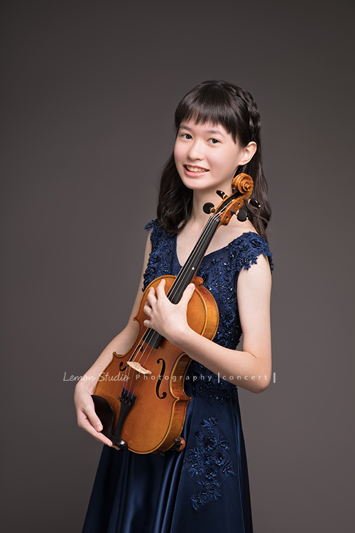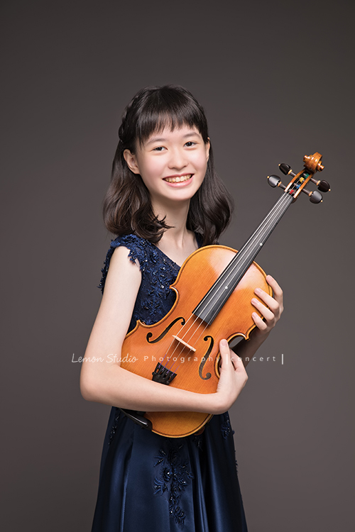 小花是學校弦樂團的一員,這天和團員們為了即將來到的音樂會一起來拍照!小花以前和爸拔媽麻來拍過家庭照,這天黎爸再次為她掌鏡,為了小花的音樂會拍照!這張是小花的全身照!