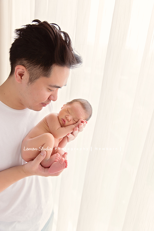 男寶寶乙緁出生13天大時的系列相片,這張爸拔親親寶寶
