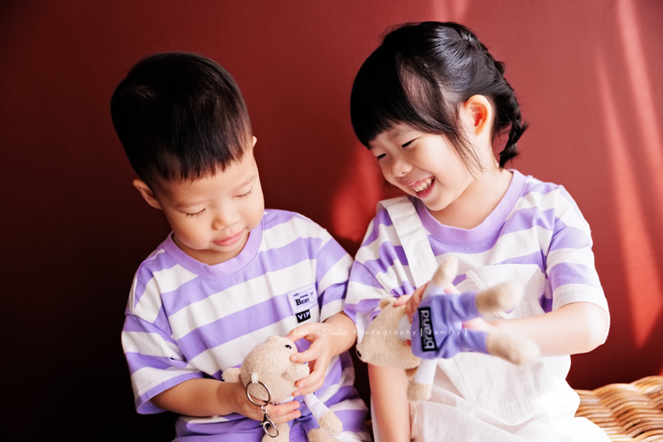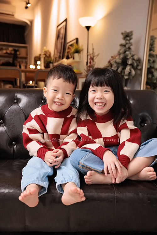 榮峰爸拔一家來拍照,五歲的姊姊及兩歲的弟弟兩人活潑又可愛,姊姊跟弟弟感情很好,拍照時跟爸拔媽麻玩得很開心啊!這張是超可愛的姐弟倆人的合照!