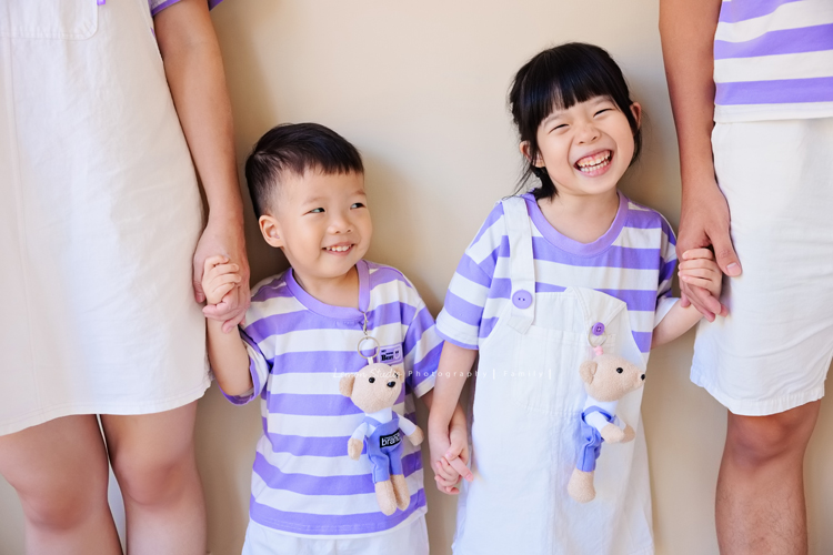 榮峰爸拔一家來拍照,五歲的姊姊及兩歲的弟弟兩人活潑又可愛,姊姊跟弟弟感情很好,拍照時跟爸拔媽麻玩得很開心啊!這張是一家四口超可愛的全家福!