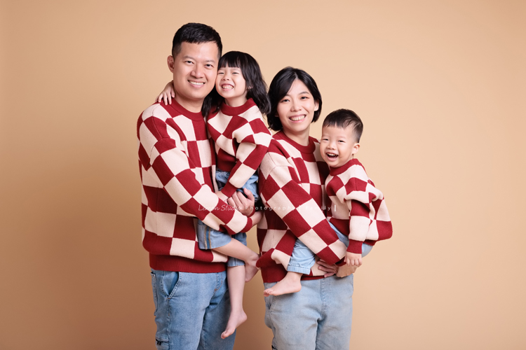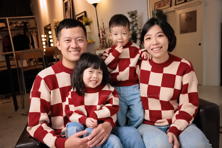 榮峰爸拔一家來拍照,五歲的姊姊及兩歲的弟弟兩人活潑又可愛,姊姊跟弟弟感情很好,拍照時跟爸拔媽麻玩得很開心啊!這張也是可可愛愛的全家福!