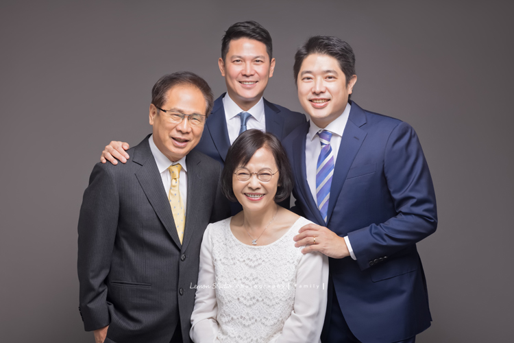 鄭媽媽的孩子孫子們都在國外居住,趁著大家一起回台灣一起來拍照,這張是兒子一家的全家福!