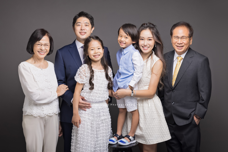 鄭媽媽的孩子孫子們都在國外居住,趁著大家一起回台灣一起來拍照,這張是女兒一家的全家福!一家人都很上相啊!