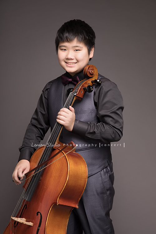雨謙、Ray、Marissa及Olivia的四人音樂會攝影,四人是學校弦樂團的一員,四人是同一組的團員,這天為了即將來到的音樂會一起來拍照!這張是Ray與他的大提琴的全身合照!Ray拍起來很有架勢啊!