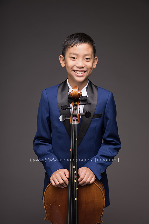 Jasper是學校弦樂團的一員,這天和團員們為了即將來到的音樂會一起來拍照!