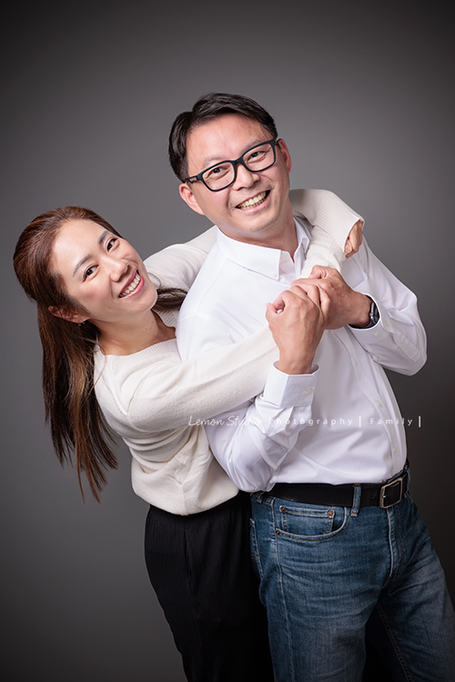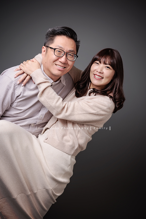 Justin爸拔和兄弟姊妹帶著各自的家庭、及爺爺奶奶一起來拍家庭攝影,雖然大家都以各自成家,三代聚在一起好熱鬧,各種組合是一定都要拍的,這張是Justin的姊姊和伴侶兩人的合照!