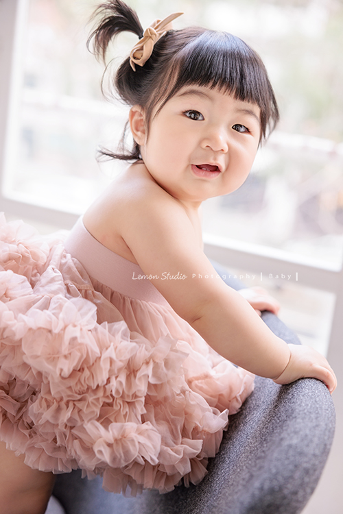 Justin爸拔和兄弟姊妹帶著各自的家庭、及爺爺奶奶一起來拍家庭攝影,雖然大家都以各自成家,三代聚在一起好熱鬧,各種組合是一定都要拍的,這張是小寶貝坐在椅子上回頭看鏡頭的一張很可愛的寶寶寫真!