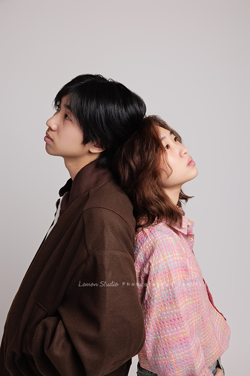 Maggie媽麻一家和妹妹妹婿帶著伯父來拍照,長輩同行的畫面總是多了一份沉靜的美,這天除了拍許多家庭合照,都是音樂性社團的兄妹倆拍照時,好像下一秒就能變成音樂人的專輯封面,這張是兄妹倆背對背看著鏡頭很有意境的一張合照!